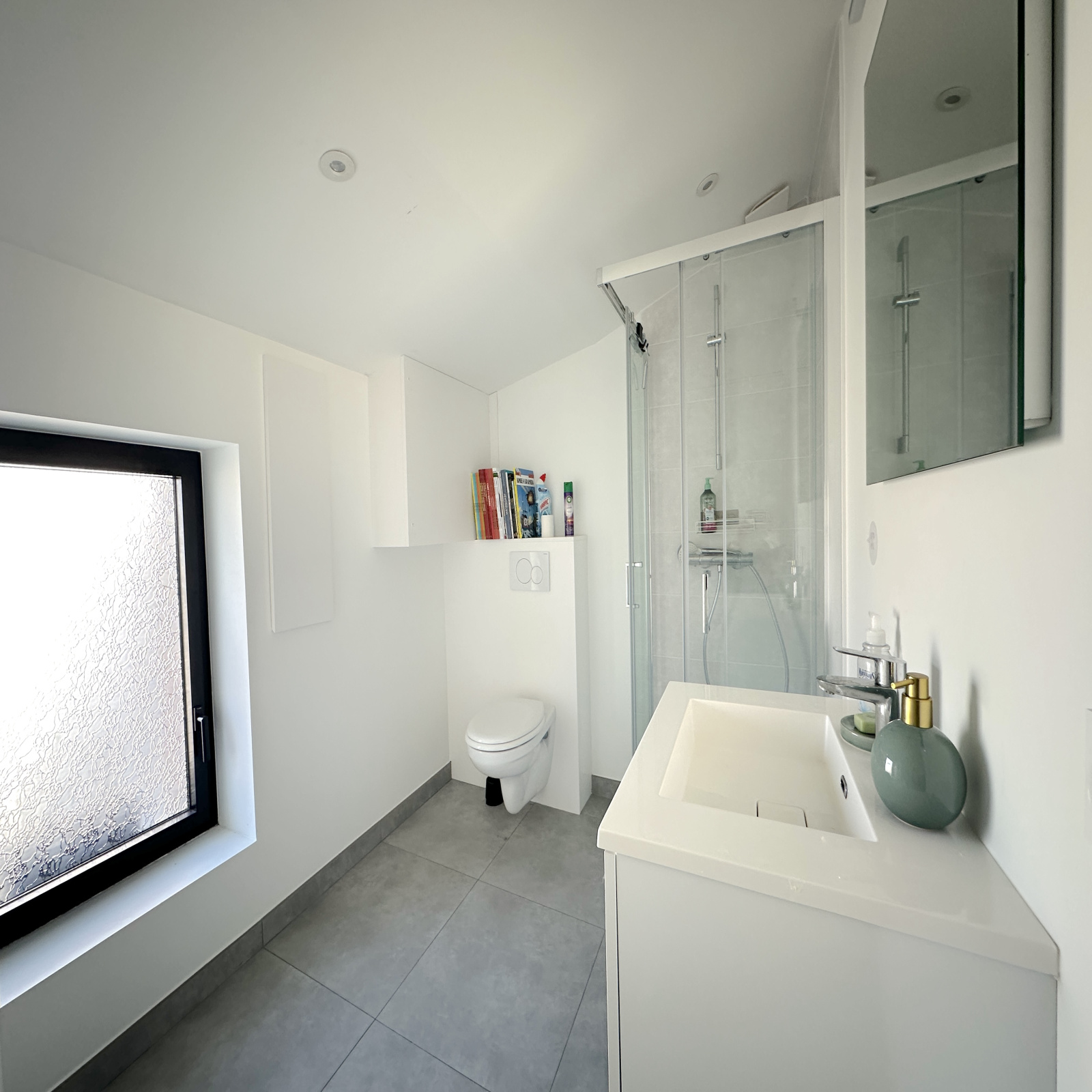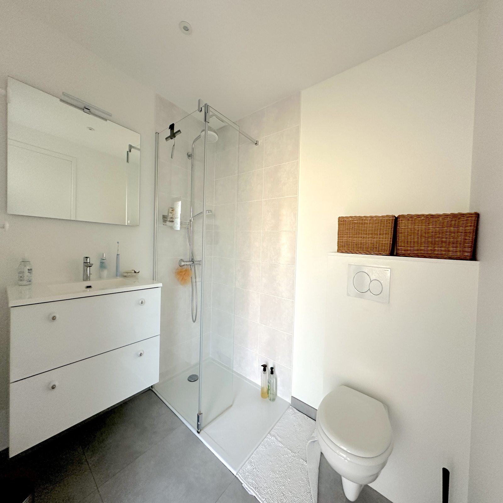 Meuble 1 vasque + douche + WC + sèche-serviette